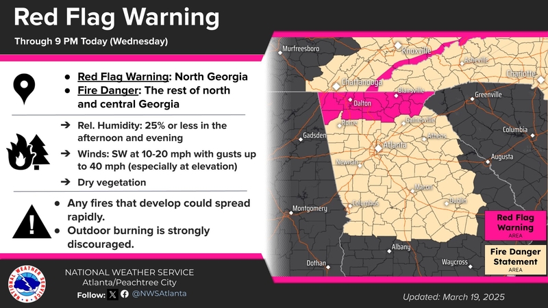 Low humidity and gusty winds will lead to dangerous fire conditions today. A Red Flag Warning has been issued for our area where the most hazardous conditions are expected. Elsewhere, a Fire Danger Statement is in effect.