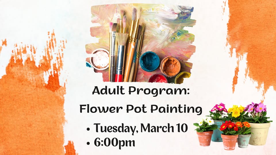 Get creative and join us for a fun evening of flower pot painting! Adults are invited to design and decorate their own unique flower pots—perfect for brightening up your home or garden this spring.