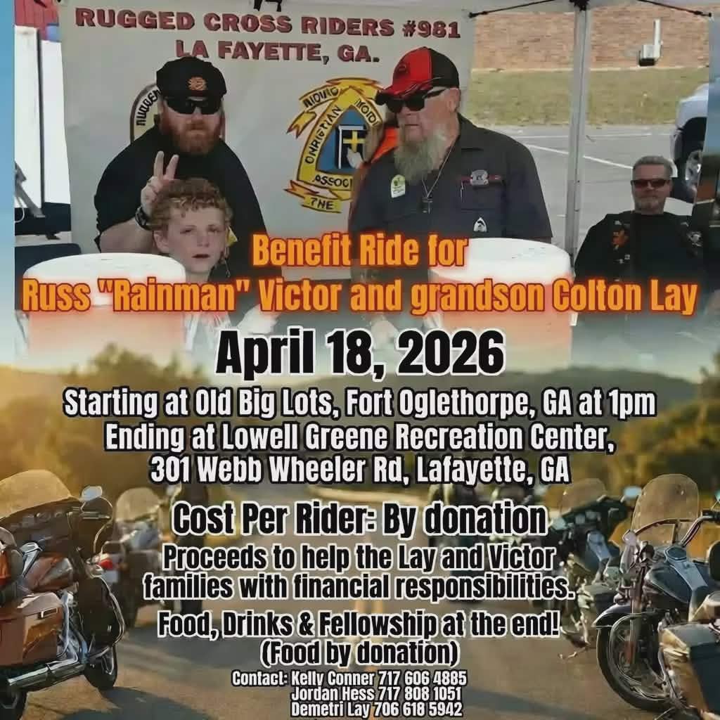 A benefit motorcycle ride will be held on April 18, 2026, to support Russ “Rainman” Victor and his grandson Colton Lay.