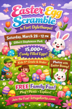Grab your baskets and hop on over to Gilbert-Stephenson Park for Fort Oglethorpe’s Easter Egg Scramble on Saturday, March 28 at noon!
