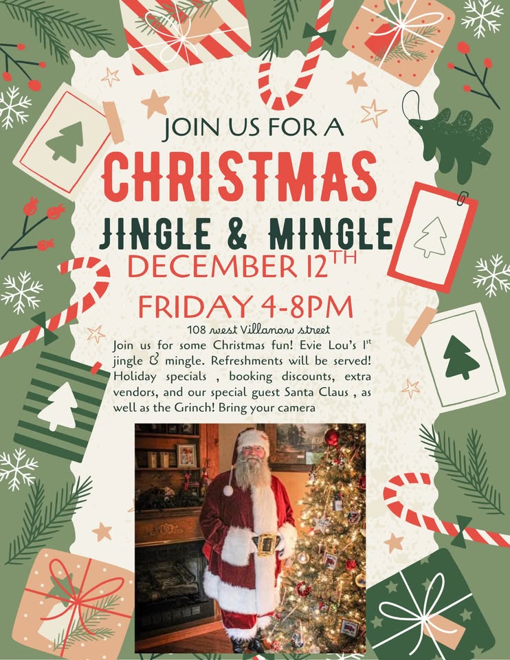 Get into the holiday spirit at Evie Lou’s first-ever Jingle & Mingle on Friday, December 12th from 4–8 PM!