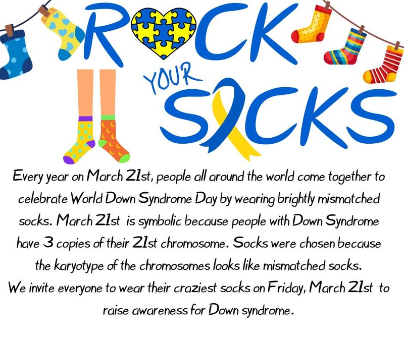 Join Walker County Schools in raising awareness during World Down Syndrome Day, March 21st, by sporting your brightly colored mismatched socks.