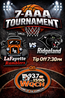 7:30pm Ridgeland vs. LaFayette – Hear the Lady Panthers and the Lady Ramblers tonight on Georgia 93-7. Pre-game is at 7:20pm, tip off at 7:30pm. The winner advances to face Gilmer on Wednesday.
