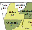 Chattooga reports 9,353 in the workforce with 9,009 employed. 344 Remains unemployed.