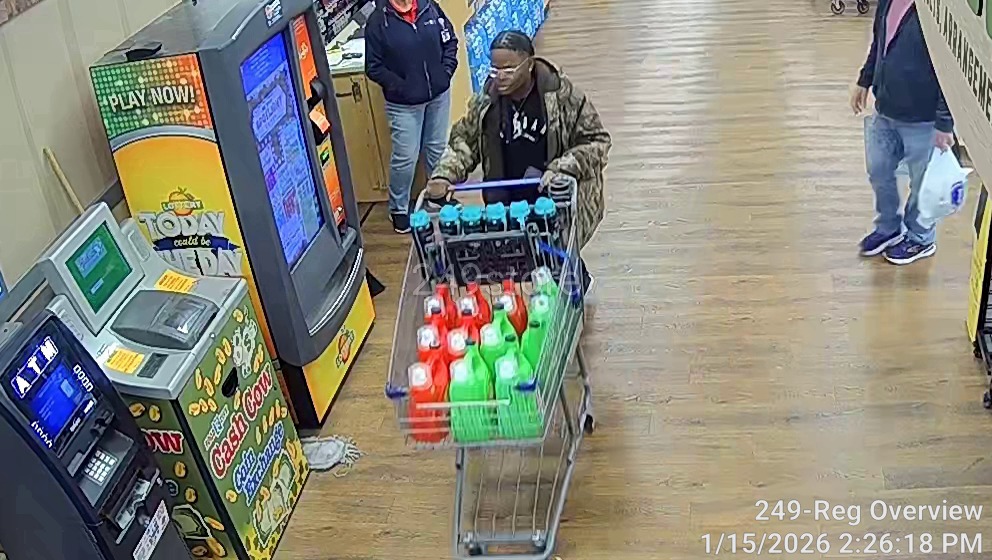 According to police, the individual shown in released photographs is considered a person of interest in an ongoing investigation. The theft occurred at a local business, though additional details have not been released at this time.