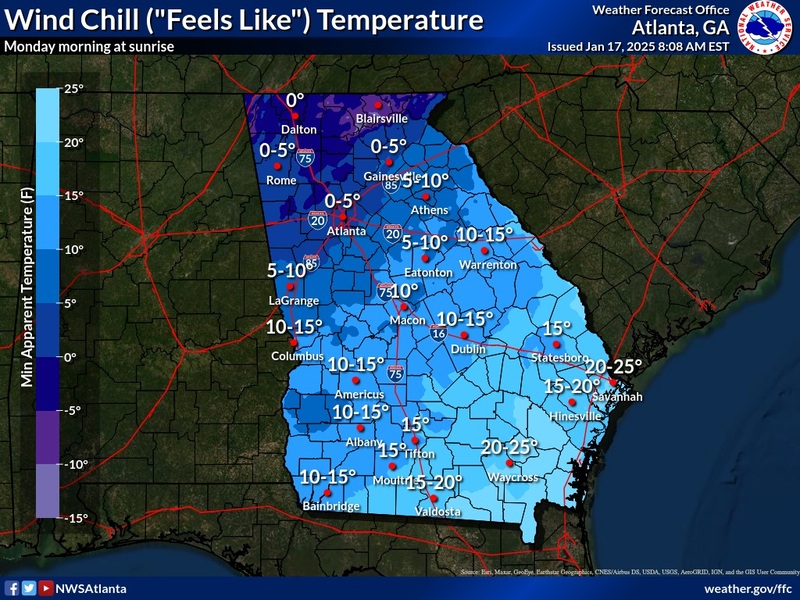 NOW is the time to prep for the cold! This is likely to be our most impactful cold snap of the season. Temperatures are expected to plummet! Temperatures around sunrise Monday morning are forecast at 10 to 25°F but breezy winds will result in ‘feels like’ temperatures in the single digits to low teens!