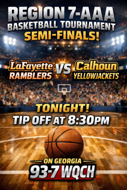The LaFayette Ramblers Boys Basketball team has reached the Semi-Finals of the Region 7-AAA Basketball Tournament. The Ramblers will be on the road to face top seeded Calhoun. Tip off is set for 8:30pm ET. You can hear the game on Georgia 93-7 or stream it at DiscoverWalker.com. A victory tonight and LaFayette will play for the region title on Friday night.