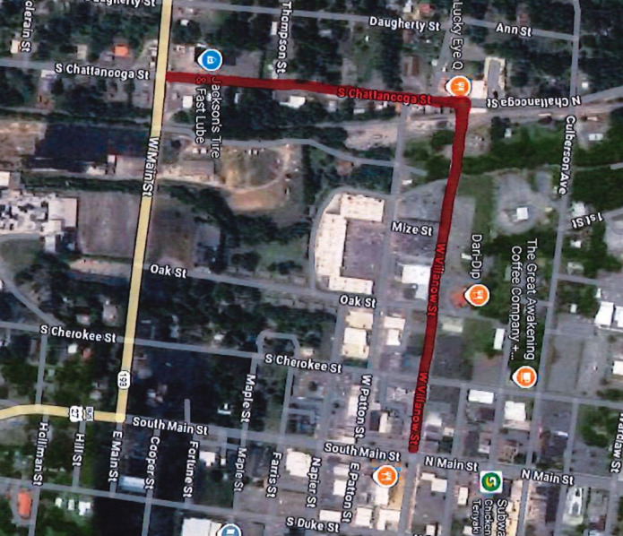 During the closure, motorists traveling west on SR BUS 1/US 27 should follow the designated detour: turn right onto West Villanow Street, then left onto South Chattanooga Street to reach SR 193.