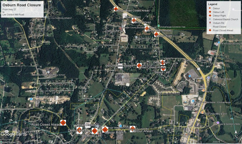 Osburn Road will be closed from Hwy 27 to Lee Gordon Mill Road beginning Wednesday, January 22 for several weeks. This is part of the sewer redirection project by the Walker County Water & Sewer Authority.