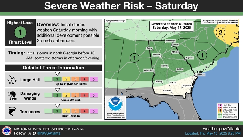 According to forecasters, a line of strong to severe storms is expected to move into far northwest Georgia after midnight Friday, potentially impacting Walker County in the early morning hours of Saturday. While this initial round is likely to weaken as it moves eastward, residents are advised to stay alert.