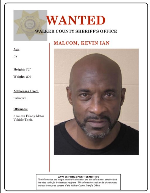 According to authorities, Kevin Malcom has three outstanding warrants for auto theft related to an incident that occurred Oct. 7, 2025, at Three Notch Auto in Rossville, Georgia.
