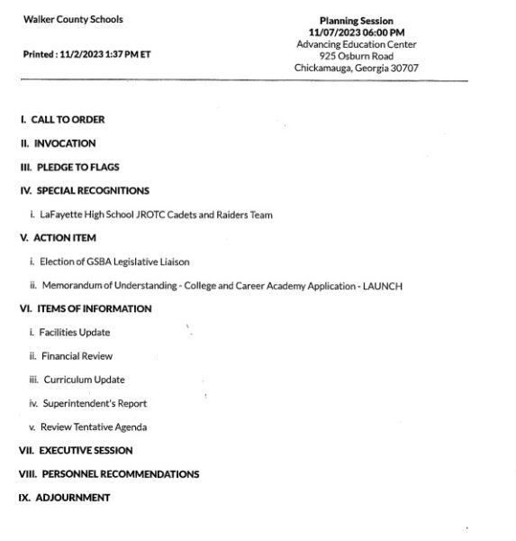 The Walker County Board of Education will hold the upcoming November meetings that are listed below.