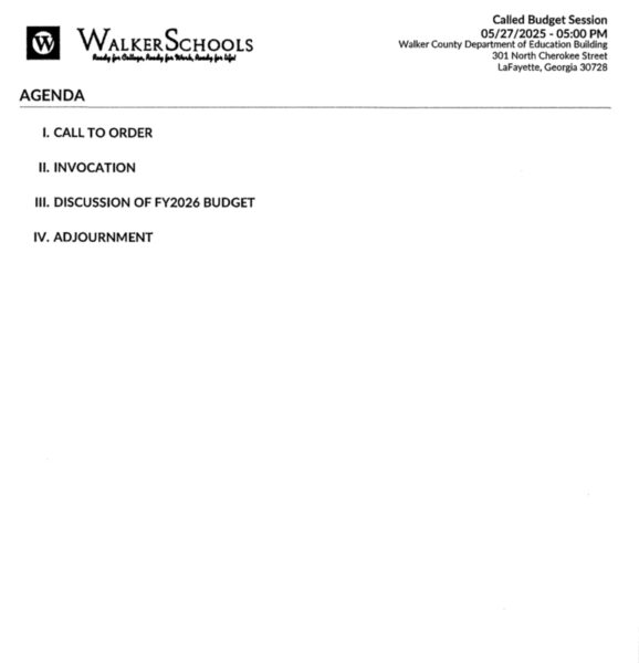 Walker County BOE Called Budget Session Agenda